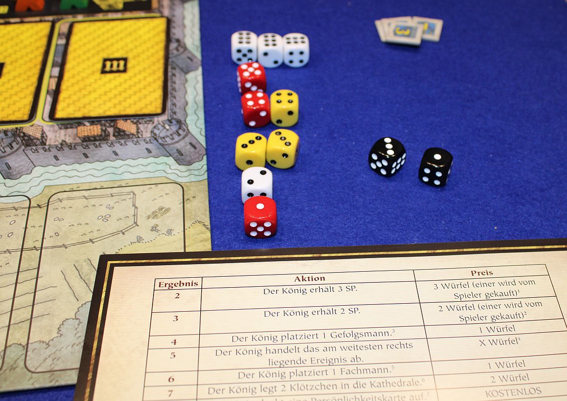 Nun gibt es seit diesem Sommer aber eine deutsche Neuauflage – und schon war der Reiz vorhanden, es doch wieder mit dem Spiel aufnehmen zu wollen. Zwölf Jahre sind seit der Erstveröffentlichung vergangen. Eine lange Zeit, in der unzählige Spiele auf den Markt gekommen sind. Davon besitzen auch viele besondere Würfel-Auswahl-Mechanismen. Allerdings ist TROYES immer noch ein Unikat – und in meinen Augen auch immer noch ein Biest, was ich nicht zähmen kann.