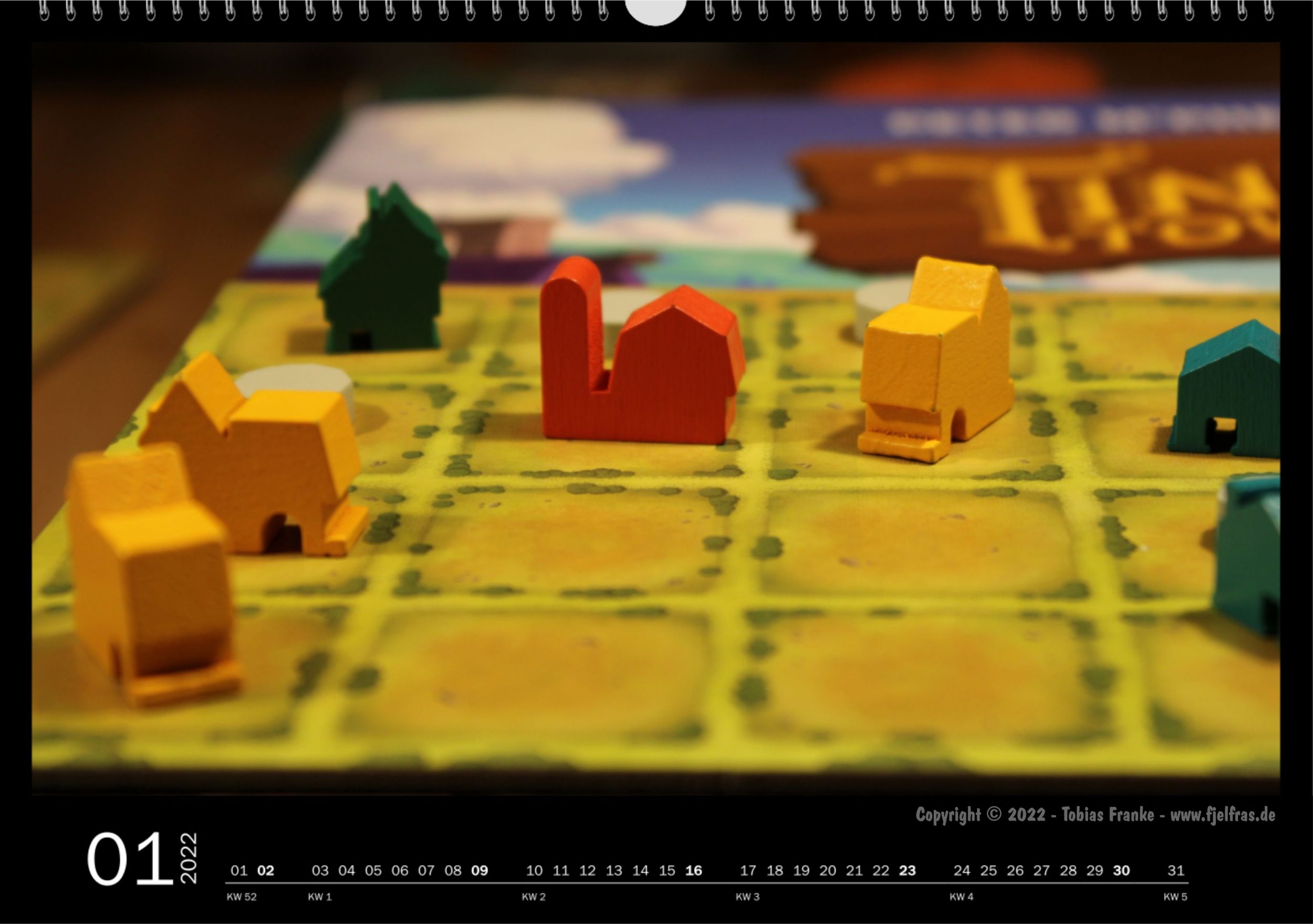 Wenn ich mir schon die Arbeit mache, jedes Jahr einen eige­nen klei­nen Brett­spiel­ka­len­der zu gestal­ten, dann kann ich die­se Arbeit auch tei­len. Des­we­gen nun der Janu­ar 2022 mei­nes pri­va­ten Brettspielkalenders: