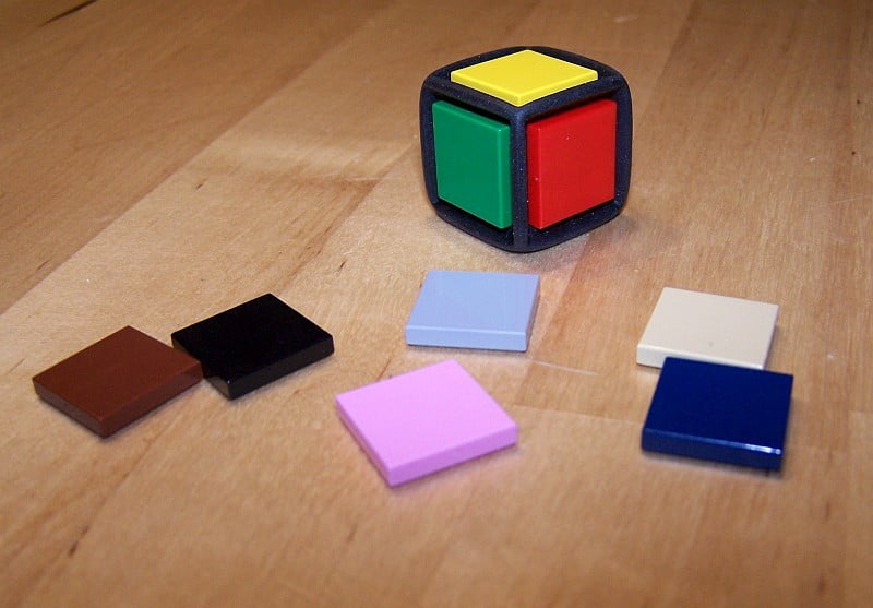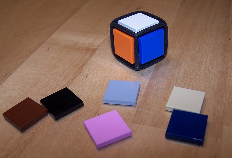 Wenn ich schon mit LEGO-Minifiguren die Spiele aufpeppe, dann ist es nur konsequent, den Startspieler auch mit einem Würfel von LEGO zu bestimmen. Wirklich lange hatte LEGO mit seinen Spielen nicht am Markt durchgehalten. Kein Wunder, war die spielerische Qualität im Gegensatz zum betriebenen Marketing-Aufwand doch eher mau. Das einzig aktive LEGO-Spiel, was ab und zu von uns gespielt wird ist SHAVE A SHEEP (den Kindern macht es Spaß, weil es so schön gemein sein kann). Aber unabhängig von der spielerischen Qualität der LEGO-Spiele: der veränderbare Würfel ist klasse!