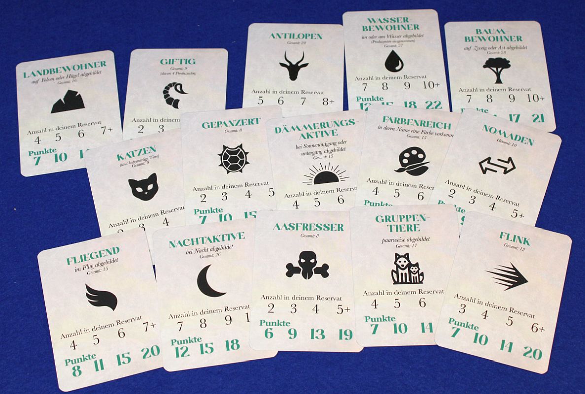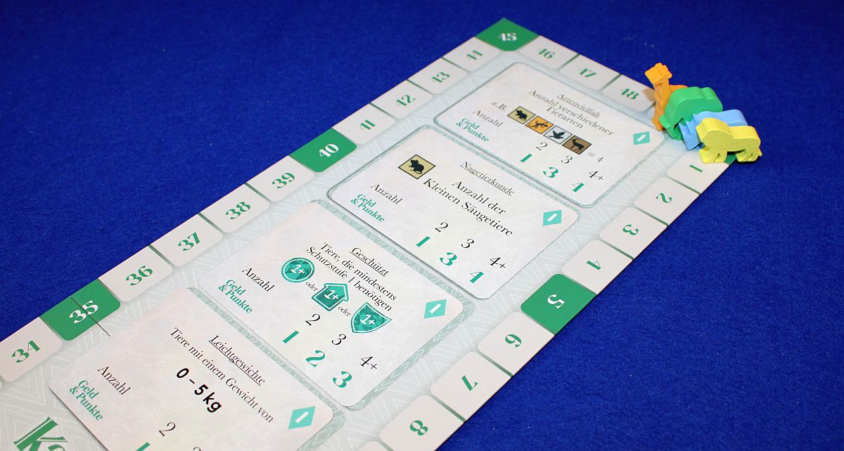 Die Forschungsaufträge können mal besser passen und mal schlechter. Diese Zufallskomponente verhindert einen zu verkopften Ablauf und aufgrund der ausliegenden Menge passiert es selten, dass wirklich gar nichts passen will. Außerdem empfehle ich, recht schnell die optionalen Ziele ins Spielgeschehen zu integrieren. Ähnlich wie die zwei anfänglichen Tiere in der Auffangstation geben diese Leitlinien für das eigene Spiel vor. An diesen können wir uns orientieren, zumal deren Punktebelohnungen nicht zu unterschätzen sind.