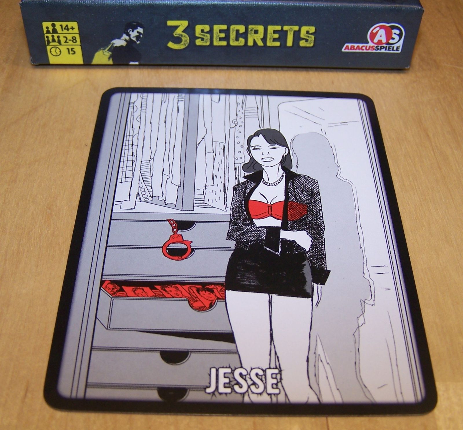 Als ich die ers­ten Bil­der von 3 SECRETS gese­hen habe, muss­te ich sofort an den Film "Sin City" den­ken (wohl auch des­we­gen, weil ich die dazu­ge­hö­ri­gen Comics nicht ken­ne): alles in schwarz-weiß und dann noch eine Far­be, die deut­lich her­aus knallt. Da es auch inhalt­lich um Ver­bre­chen geht, hät­te man 3 SECRETS wohl auch "Sin Cards" nen­nen kön­nen. Dann hät­te aber der Bezug zu der 3 gefehlt.