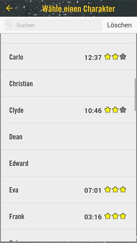 Zusätz­lich wird auch eine dazu­ge­hö­ri­ge App kos­ten­frei ange­bo­ten (bspw. bei Goog­le play). Die­se kann einer­seits die Funk­ti­on eines Timers über­neh­men, bie­tet dar­über hin­aus aber auch die Mög­lich­keit, mit einer stim­mungs­vol­len Hin­ter­grund­mu­sik zu einem inten­si­ve­ren Spiel­erleb­nis bei­zu­tra­gen. Außer­dem wird natür­lich auch gut doku­men­tiert, wel­che Per­so­nen man schon gespielt hat. Aller­dings soll­te man schon eini­ges an frei­en Spei­cher­platz für die App haben.