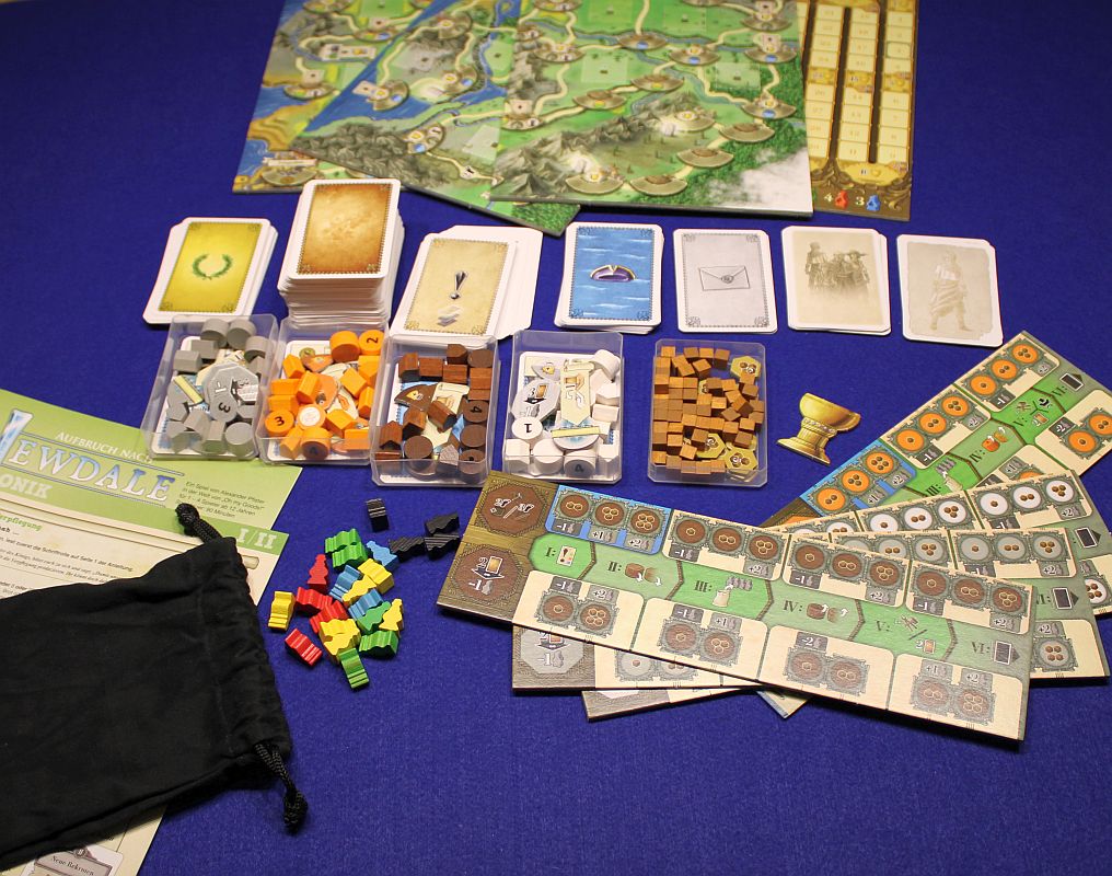 Das gefällt mir gut: Dass sich Kennerspiele und ein bestimmtes Zock-Element nicht ausschließen, wissen wir alle spätestens seit DIE QUACKSALBER VON QUEDLINBURG (wobei BROOM SERVICE dabei nicht vergessen werden sollte). Auch AUFBRUCH NACH NEWDALE hat einen nicht zu unterschätzenden Glücksanteil beim Herausziehen der Gefährten. Allerdings gibt es auch genügend Möglichkeiten, sich diesem erst gar nicht auszusetzen. So kann jeder für sich selbst entscheiden: will ich aufs Ganze gehen oder doch lieber auf Nummer sicher. Selbstredend wird man nicht sehr erfolgreich sein, wenn man nie etwas riskiert. Aber viel Risiko kann gerne auch mal zu viel sein. Hier behält AUFBRUCH NACH NEWDALE meiner Meinung nach eine sehr gute Balance. Man hat ausreichend Informationen, um das Spielgeschehen richtig einschätzen zu können. Trotzdem ist das Ziehen der Gefährten immer ein emotionaler Höhepunkt und wird dann meist auch entsprechend kommentiert.