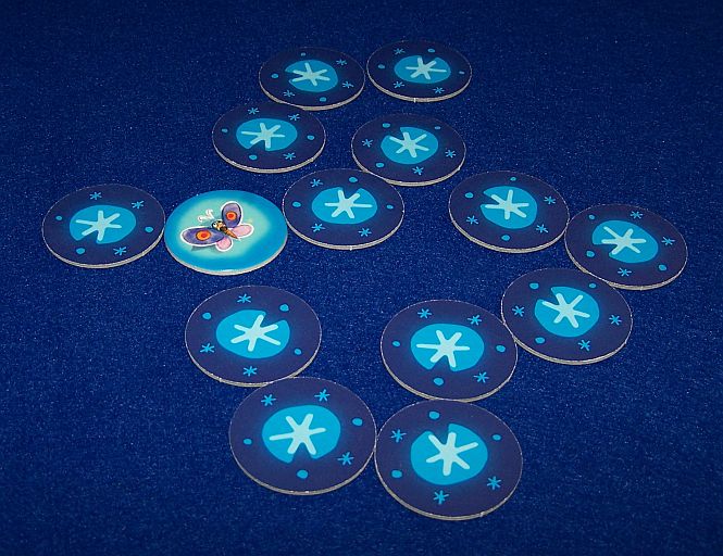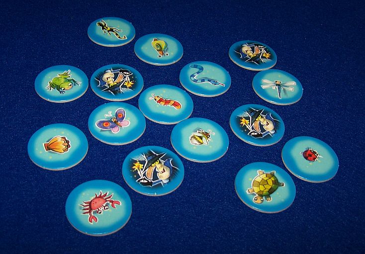 Es sei denn, das anfangs aufgedeckte Tier befindet sich ebenfalls auf dem verzauberten Seerosenblatt. Dann ist der Zauber aufgehoben und man kann weiter laufen. So können dann auch Figuren wieder bewegt werden, die in der vorherigen Runde durch den Zauber zum Stillstand verdammt wurden. Sind dahingegen alle Figuren verzaubert und man hat kein hilfreiches Tier aufgedeckt, dann wird ebenfalls wieder ein Wasserstreifen versetzt.