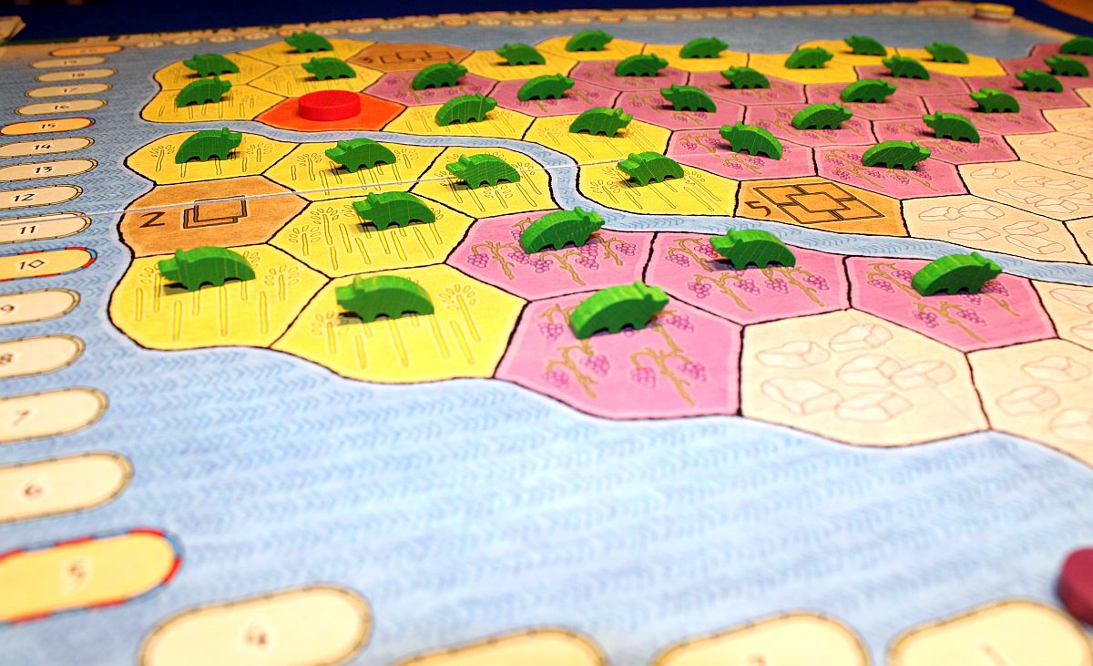 Ansonsten ist man anfangs gerne etwas verwirrt, wie das nun mit den Details zu "bebaut", "benachbart", "verbunden" und "getrennt" ist. Irgendwie fehlt vielen diesbezüglich die Griffigkeit, damit es im Kopf klick macht. Die goldene Regel heißt: ein Feld gilt als bebaut sobald sich etwas anderes als ein Arbeiter oder ein Krokodil darauf befindet. Vielleicht hätte man für diese Begrifflichkeiten nochmals eine zusätzliche Übersicht beilegen sollen, die kurz und prägnant solch Vokabular erklärt.