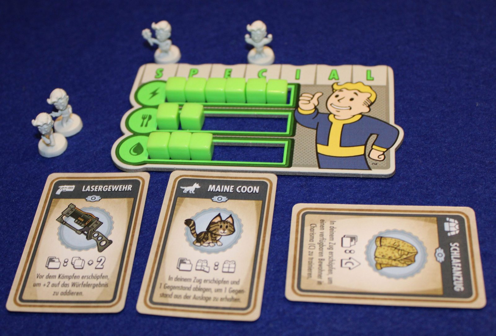 Ansonsten darf man bei FALLOUT SHELTER keine komplexe Strategien erwarten. Alles funktioniert, man hat immer kleine Entscheidungen zu treffen – aber es fehlen die nachhaltigen Emotionen. Der Spannungsbogen ist relativ flach, da mehr oder weniger immer das Gleiche gemacht wird. Insgesamt sind wenig unterschiedliche Wege zu bestreiten und es ist meist recht offensichtlich, was man zu machen hat. Es sind meistens auch immer genügend Einsetzfelder vorhanden, so dass man kaum die Möglichkeit hat, die Mitspielenden auszublocken. Und passiert einem das augenscheinlich doch, dann hat man meist genügend sinnvolle Alternativen.