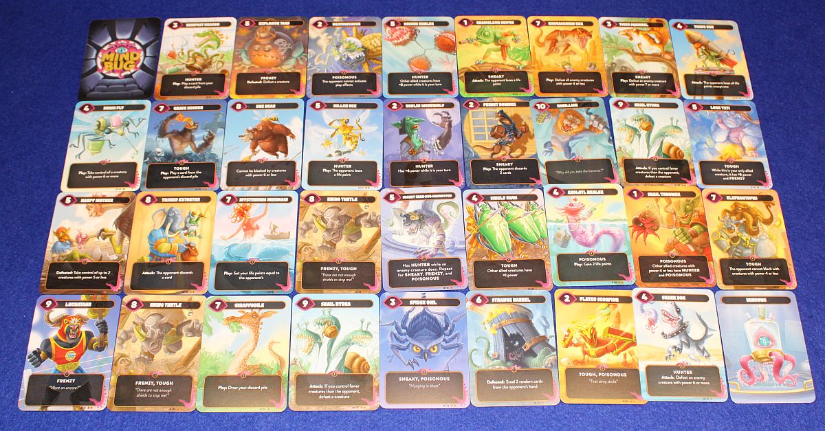Das gefällt mir gut: MINDBUG konzentriert sich auf das Wesentliche. Da muss man nicht erst diese Karte besitzen, um jene ausspielen zu dürfen. Oder erst soundso viel Zeug angesammelt haben, um einen Effekt zu nutzen. Nein, gefällt mir die Karte, dann kann ich sie sofort ausspielen und bestenfalls nutzen. Und das Fiese ist: alle Karten gefallen! Denn alle Karten sind auf ihre spezielle Art stark. Somit fühlt sich auch jede einzelne Entscheidung bedeutend an. MINDBUG besitzt keinen Leerlauf, keine Vorbereitungsphase. Von Anfang an ist man voll im Spiel drin und ganz selten dauert ein Duell mehr als 15 oder gar 20 Minuten.