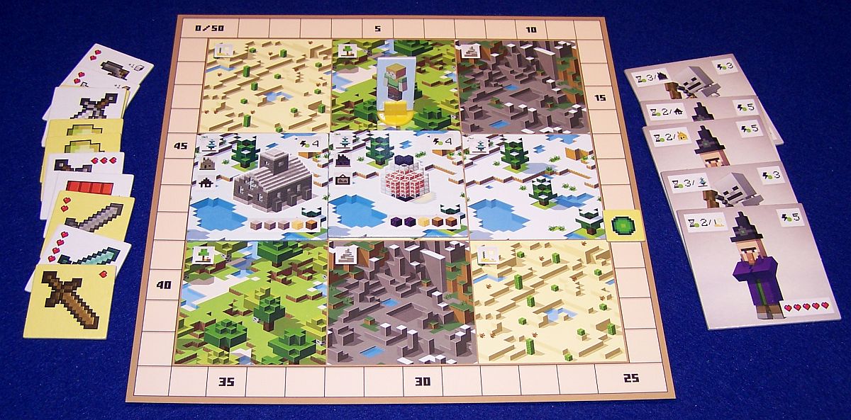 The­ma... wie auch im gleich­na­mi­gen Com­pu­ter­spiel erkun­den wir die Ober­welt. Dabei sam­meln wir ganz vie­le Blö­cke und errich­ten dar­aus beein­dru­cken­de Bau­wer­ke. Doof nur, dass in die­ser Ober­welt auch Mons­ter ihr Unwe­sen trei­ben. Gut wie­der­um, dass wir mit Waf­fen aus­ge­rüs­tet sind und noch wei­te­re erwer­ben kön­nen. Was glück­li­cher­wei­se fehlt: der Ober­gu­ru, in des­sen Namen wir arbei­ten und des­sen Anse­hen wir mit unse­rer Bau­tä­tig­keit meh­ren wol­len. Es reicht völ­lig aus, am Ende ein­fach die meis­ten Sieg­punk­te haben zu wol­len – auch wenn die­se nun Erfah­rungs­punk­te heißen.