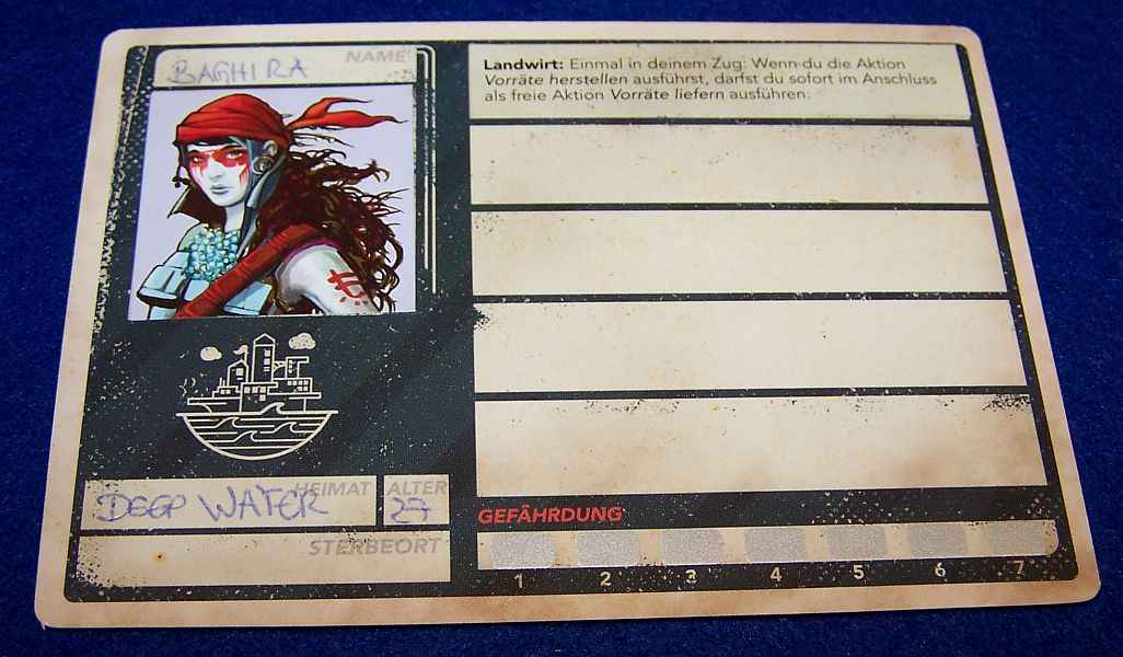 Ganz entscheidend zu diesem Erlebnis trägt sicherlich die Persönlichkeitsentwicklung der einzelnen Charaktere bei. Erst sind es nur abstrakte Spielerbögen, die man notgedrungen mit einem Bild und einen Namen versieht. Aber im Laufe einer Kampagne ändert sich das. Man investiert in die Charaktere, man erkennt ihre Stärken aber auch ihre Schwächen. Man leidet mit, wenn Narben fällig sind oder gar ein Charakter verstirbt. Das Spiel erlaubt es, einzelne Partien mit unterschiedlichen Charakteren zu spielen. Somit kann man auf die ausliegenden Aufgaben reagieren. Allerdings kam uns das gar nicht wirklich in den Sinn. Die bisherigen Charaktere haben das Abenteuer begonnen, die werden es nun auch durchziehen! Ich möchte jetzt nicht behaupten, dass man eine echte emotionale Bindung zu den einzelnen Personen aufbaut. Aber sie sind am Ende doch mehr als bspw. bloß eine Forscherin oder ein Logistiker.