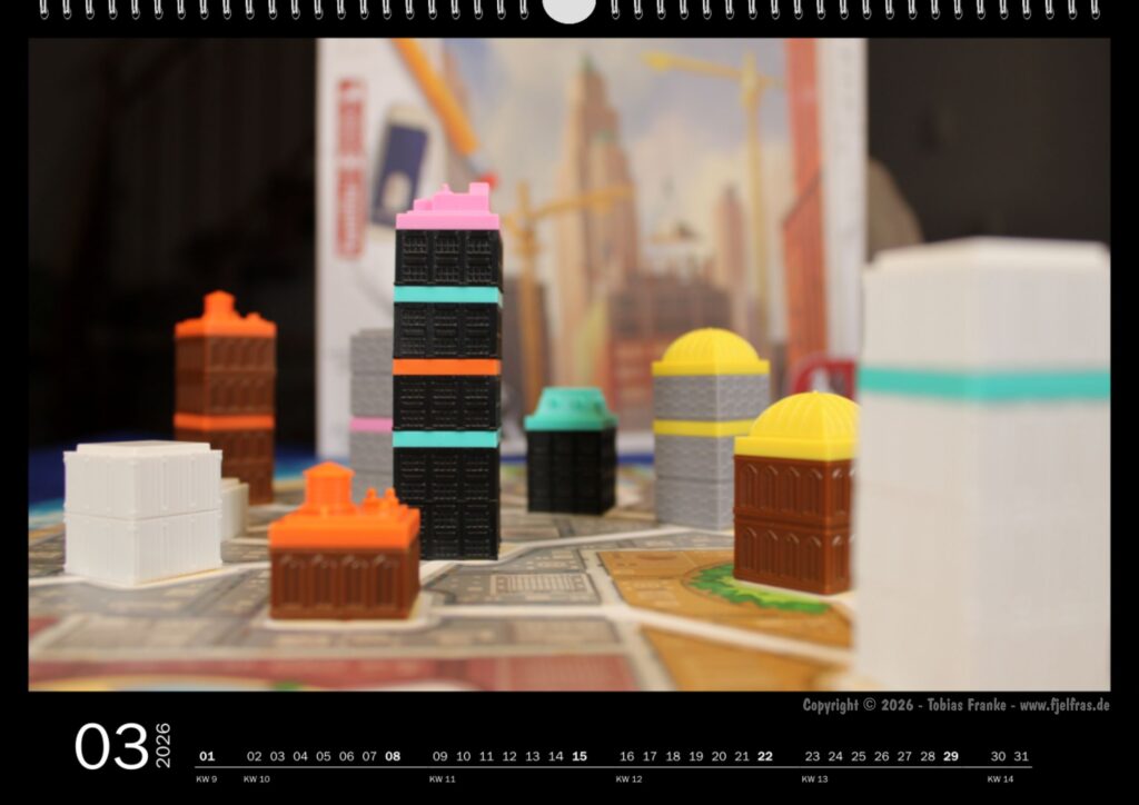 Wenn ich mir schon die Arbeit mache, jedes Jahr einen eige­nen klei­nen Brett­spiel­ka­len­der zu gestal­ten, dann kann ich die­se Arbeit auch tei­len. Des­we­gen nun der März 2026 mei­nes pri­va­ten Brettspielkalenders: