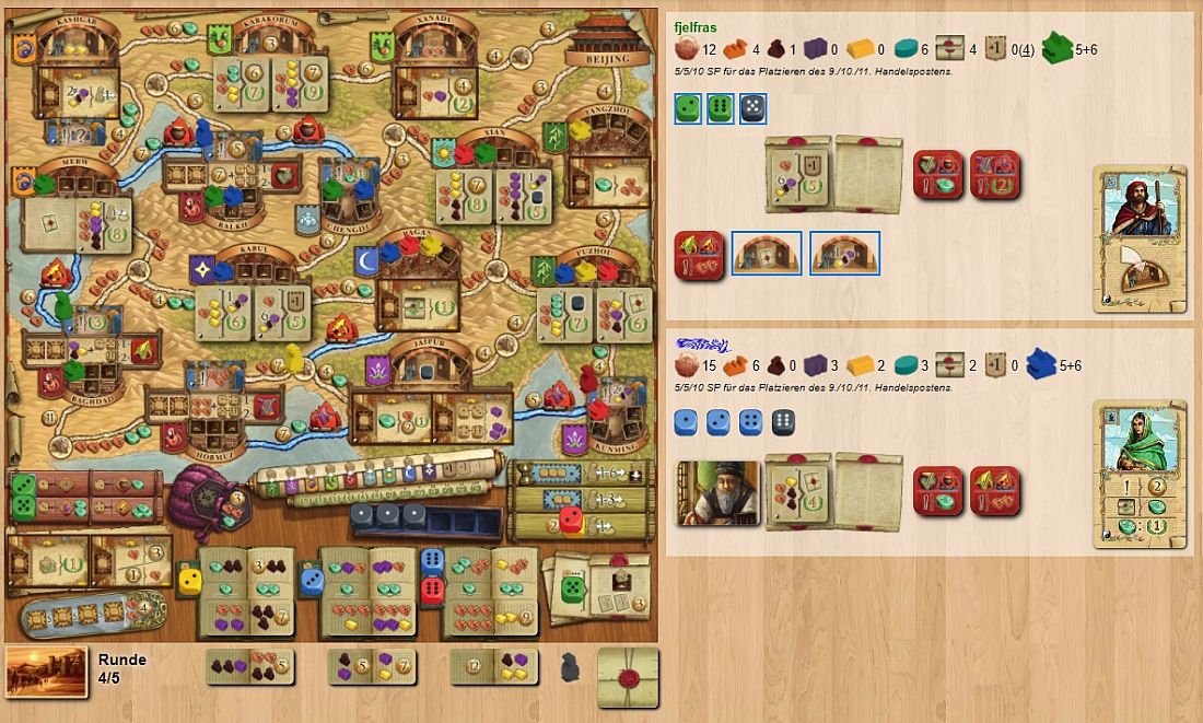 Screen­shot einer Par­tie MARCO POLO 2 – IM AUFTRAG DES KHAN [Quel­le: https://boardgamearena.com]