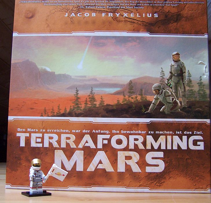Wie toll TERRAFORMING MARS ist, habe ich schon oft genug gesagt. Mit der Aus­stat­tung bin ich aber nur bedingt zufrie­den. Da sind einer­seits die­se komi­schen wei­ßen Plas­tik­wür­fel als Gene­ral-Anzei­ger, ande­rer­seits auch ein recht fan­ta­sie­lo­ses Start­spie­ler-Plätt­chen. Eigent­lich woll­te ich mir auf der letz­ten SPIEL das "Acrylic Token Set" von The Bro­ken Token besor­gen – das war aber dum­mer­wei­se schon aus­ver­kauft. So habe ich mir nun anders aus­ge­hol­fen, um mir einen TERRAFORMING MARS Start­spie­ler zu besorgen.