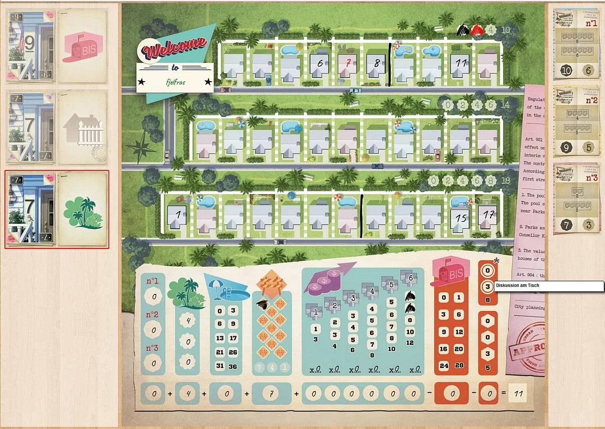 Screen­shot einer Par­tie WELCOME TO... [Quel­le: https://boardgamearena.com]